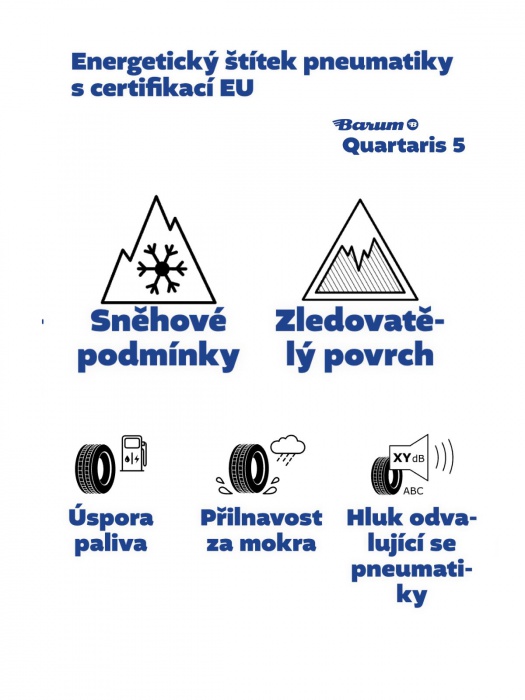 Barum Quartaris 5 splňuje všechny evropské standardy pro zimní provoz a je označena symboly:
