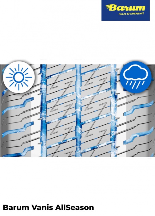 Barum Vanis AllSeason je moderní celoroční pneumatika určená pro náročný provoz dodávek, vanů a lehkých užitkových vozidel. Nabízí vyvážený výkon během celého roku, bez nutnosti sezónního přezouvání, a je navržena tak, aby dobře zvládala vyšší zatížení, dlouhé trasy i městské doručování.