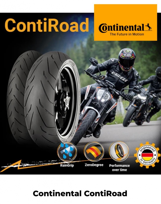Continental ContiRoad je silniční pneumatika pro motocykly, která nabízí stabilitu, komfort a dlouhou životnost.