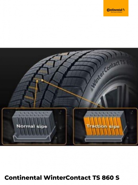 Zimní pneumatika pro osobní automobily Continental WinterContact TS 860 S jako nástupce veleúspěšného modelu TS 850 nezůstává pozadu. TS 850 se stal jedním z nejoblíbenějších zimních obutí, navíc ověnčený oceněními. Continental WinterContact TS 860 rovněž obdržela nejvyšší známku v testu zimních pneumatik autoklubů ADAC (D) / ÖAMTC (A) / TCS.