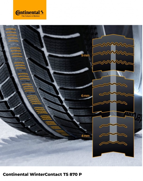 Zimní pneumatika Continental WinterContact TS 870 P patří mezi nejpokročilejší dezény značky Continental, vyvinuté speciálně pro těžší a výkonnější vozy. Směrový dezén s hustou sítí 3D lamel se při záběru vzájemně podpírá a vytváří ostré hrany pro lepší přilnavost na sněhu a ledu. V praxi to znamená kratší brzdnou dráhu v zimních podmínkách, jistější rozjezdy do kopce a vyšší stabilitu při brzdění i v náročných situacích.