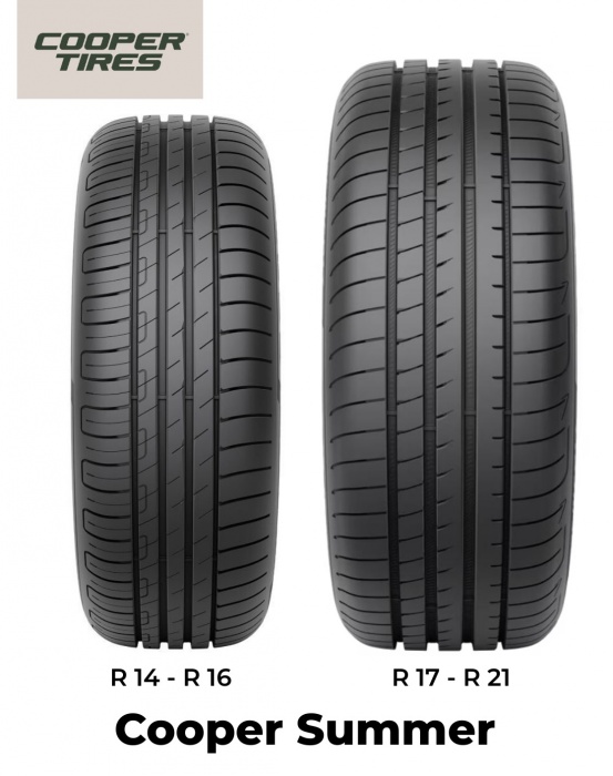 Letní pneumatiky Cooper Summer nabízejí vyvážený výkon pro každodenní provoz s důrazem na komfort a spolehlivou přilnavost na suché i mokré vozovce. Jsou vhodné pro osobní vozy v běžných letních podmínkách. Značka Cooper patří do skupiny Goodyear.