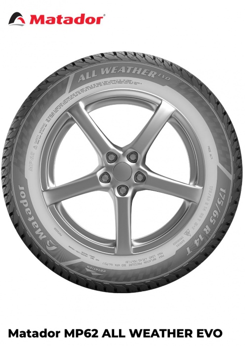 Matador MP62 All Weather Evo je celoroční pneumatika vyvinutá s podporou technologie koncernu Continental. Zaměřuje se na stabilitu, jisté chování v různých podmínkách a dlouhou životnost, což z ní dělá ideální řešení pro řidiče, kteří chtějí používat jedinou sadu pneumatik po celý rok. Dezén je optimalizovaný tak, aby dobře fungoval v zimních situacích a zároveň poskytoval komfort v letních měsících.
