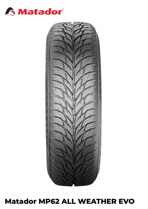 Matador MP62 All Weather Evo je celoroční pneumatika vyvinutá s podporou technologie koncernu Continental. Zaměřuje se na stabilitu, jisté chování v různých podmínkách a dlouhou životnost, což z ní dělá ideální řešení pro řidiče, kteří chtějí používat jedinou sadu pneumatik po celý rok. Dezén je optimalizovaný tak, aby dobře fungoval v zimních situacích a zároveň poskytoval komfort v letních měsících.