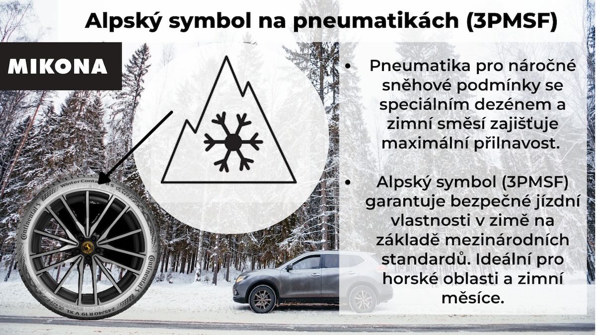 Alpský symbol na pneumatikách, označovaný také jako 3PMSF (Three Peak Mountain Snowflake), je mezinárodně uznávané označení zimních pneumatik, které splňují přísné požadavky na jízdní vlastnosti v náročných zimních podmínkách.