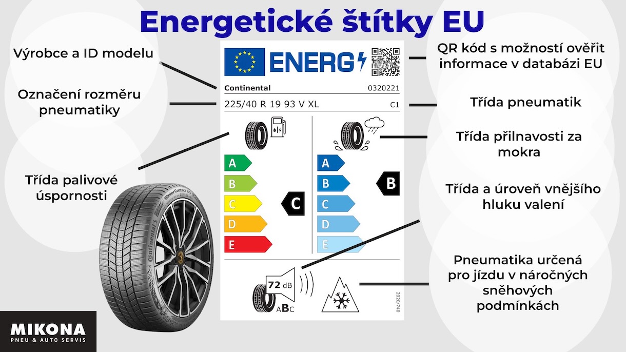 Tyto štítky fungují podobně jako energetické štítky na domácích spotřebičích a poskytují rychlý přehled o vlastnostech pneumatiky, které ovlivňují nejen účinnost vozidla, ale také jeho dopad na životní prostředí.